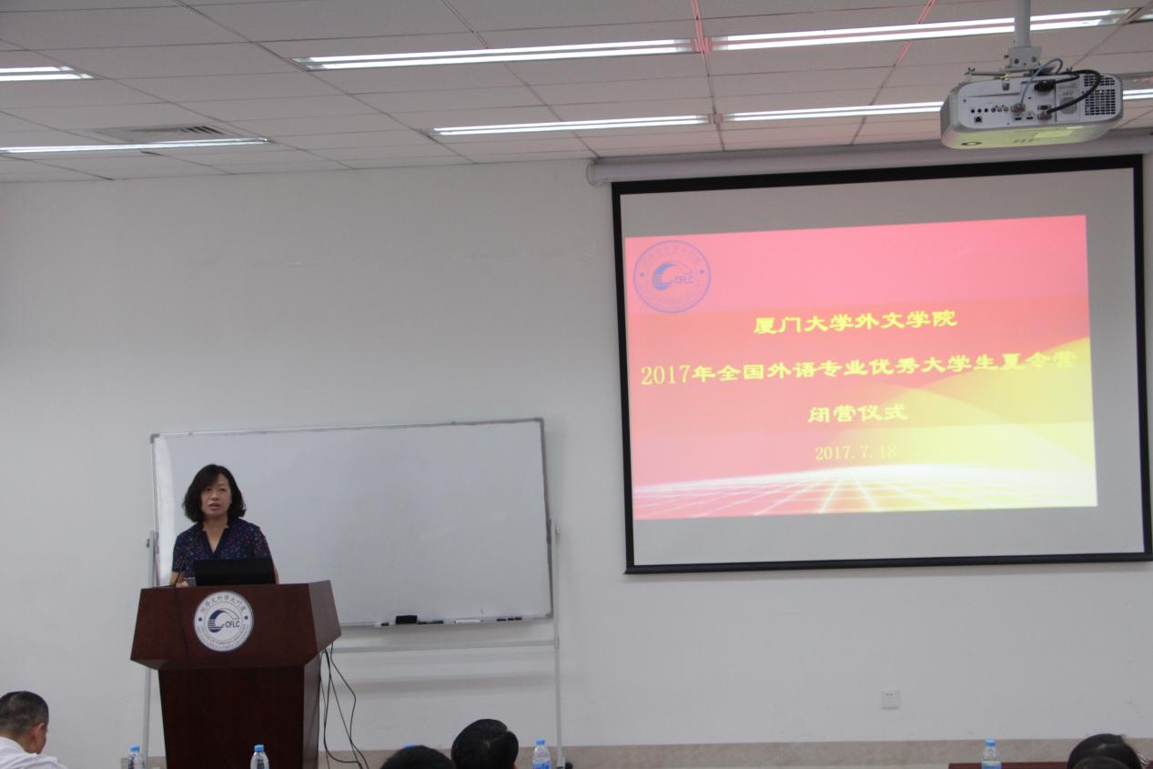 7月15日上午九点,外文学院全国外语专业优秀大学生暑期夏令营正式开营。厦门大学外文学院院长张龙海、党委副书记郑新风、副院长徐琪、副院长辛志英等领导老师出席了本次开营仪式,介绍了外文学院的办学历史与科研情况,希望同学们在夏令营期间学习生活愉快,预祝本次夏令营圆满成功。