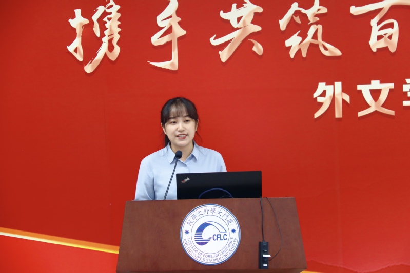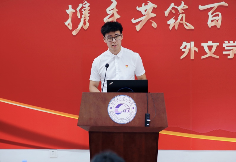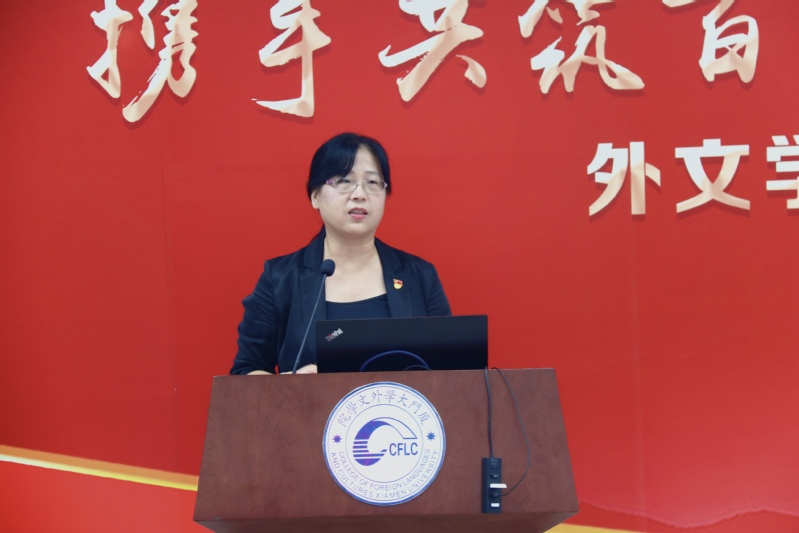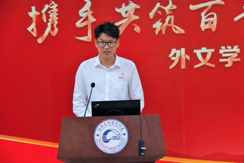 为庆祝中国共产党成立100周年,加强党史学习教育,勉励毕业生党员铭记奋斗历程,勇担时代使命,6月21日,外文学院2021届毕业生党员“携手共筑百年梦 扬帆启航新征程”主题党日活动在德贞楼112报告厅举行。厦门大学基层党建工作联络员黄定基,组织部副部长乔连全,党史学习教育第五指导组副组长邹海燕,外文学院党委书记陈志伟,党委副书记马龙、沈丽秀,党委委员、副院长徐琪等出席本次活动。活动由本科生第一党支部党员高凌雪主持。
