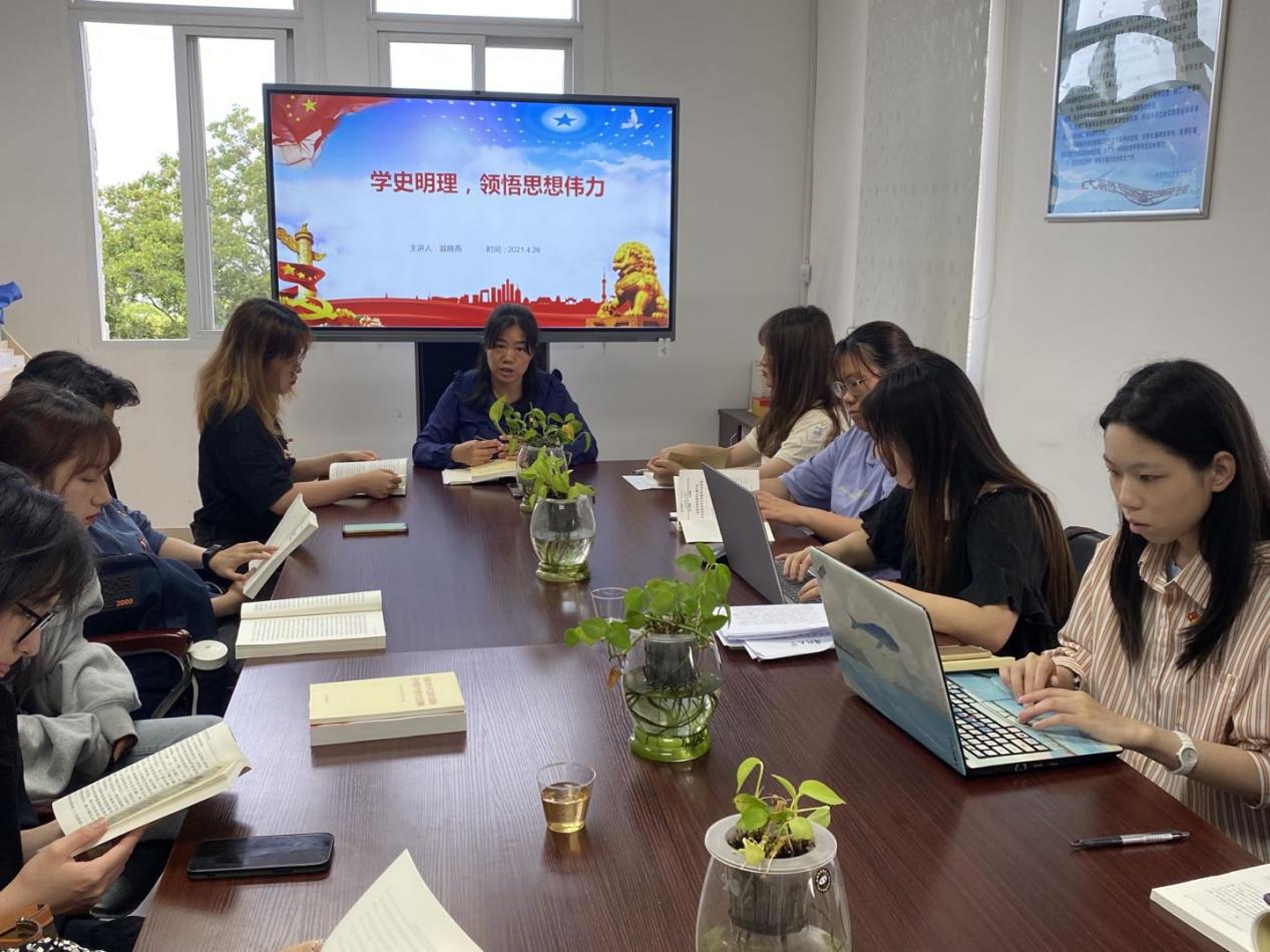 4月26日,本科生第二党支部在南光三401会议室开展了“固定党日+活动”,共同就习近平《论中国共产党历史》的内容开展学习。全体党员参加会议,会议由党支部书记戴晓燕主持。
