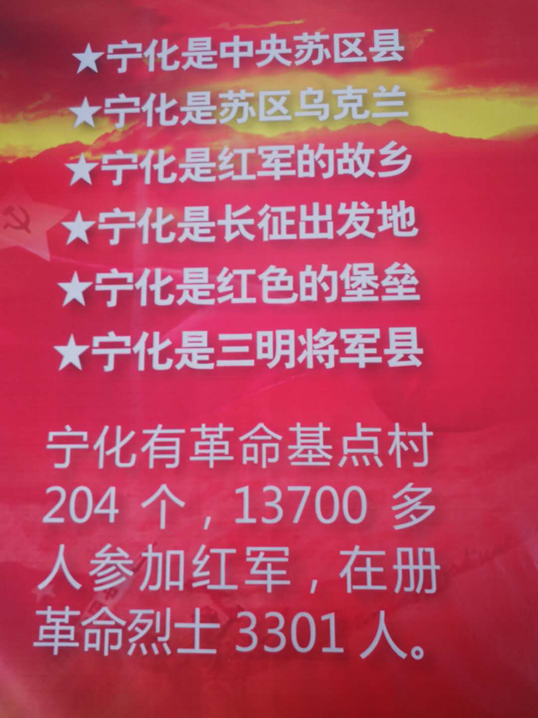 宁化和建宁属三明市管辖,都是闽西苏区。在三明北站下车之后,一行人坐上大巴,径直驶往宁化县城。位于闽赣两省交界处、武夷山脉东麓的宁化,曾经是中央苏区的重要组成部分,有着“中央苏区乌克兰”的美称。我们参观的第一站是宁化革命纪念园。进入纪念园,绕过纪念馆是一个小广场,广场上矗立着两座雕像,一座雕塑再现了红军战士冲锋陷阵的情景,雕塑的名字就叫“军号嘹亮”。另一座雕塑是毛泽东主席站在一匹骏马旁边极目远眺,雕塑的底座上刻着毛主席著名的《如梦令·元旦》:“宁化、清流、归化, 路隘林深苔滑。今日向何方, 直指武夷山下。山下山下, 风展红旗如画。”雕塑和诗词令人浮想联翩,脑中闪回当年群情激昂、红旗招展的热火朝天景象,心中顿时涌起一股革命的乐观主义豪情。