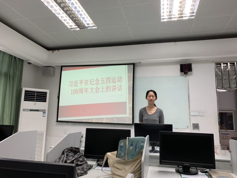 5月6日下午16:40,厦门大学外文学院2015级本科“群英荟萃”党支部于基金楼303开展了主题为“学习习近平总书记在纪念五四运动100周年大会上的重要讲话精神”的党日学习活动。本次活动由支部书记高怡铭主持,党员陈明益、王萍主讲。