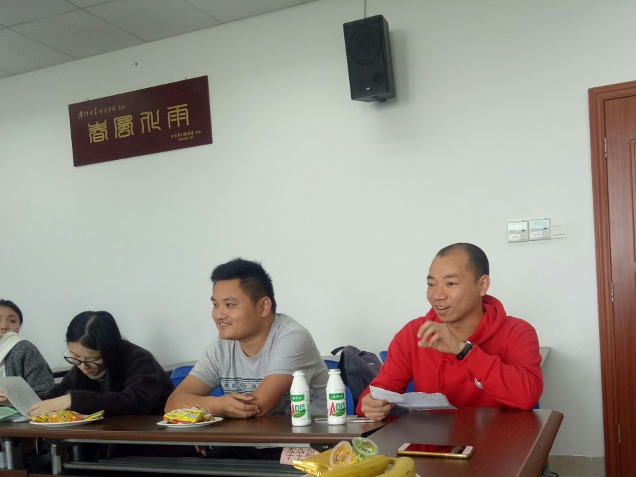 在学院党委的指导和支持下,3月11日下午,外文学院“固定党日+”博士生沙龙活动在德贞楼415顺利举行。本次活动由学院博士生党支部主办,2016级硕士研究生第二党支部、2017级硕士研究生第一党支部和2018级硕士研究生第三党支部共同承办,旨在为学院硕博研究生搭建一个交流分享的平台。