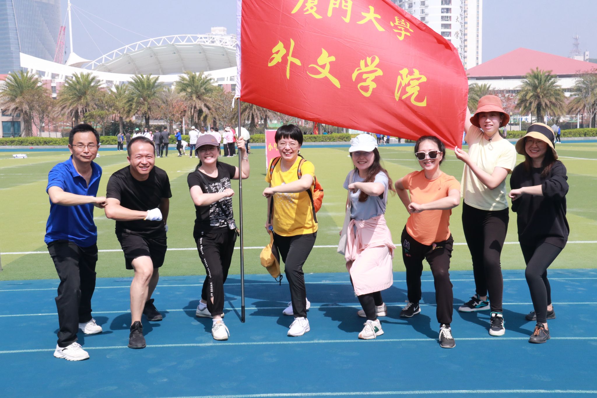4月16日,“礼赞二十大 建功新时代”厦门大学教职工趣味运动会在思明校区演武田径场成功举办。在喜迎厦门大学外文学科创建百年之际,外文学院代表队以昂扬的斗志、饱满的精神参加了本次运动会。赛前,院工会、妇委会全体成员在辛志英副院长和工会主席潘宁老师的带领下,积极组织参赛队员练习,华体网教师在筹备各项院庆活动之余挤出宝贵时间,参加了多次集体训练,展现出了外文学院朝气蓬勃、积极向上的精神风貌。