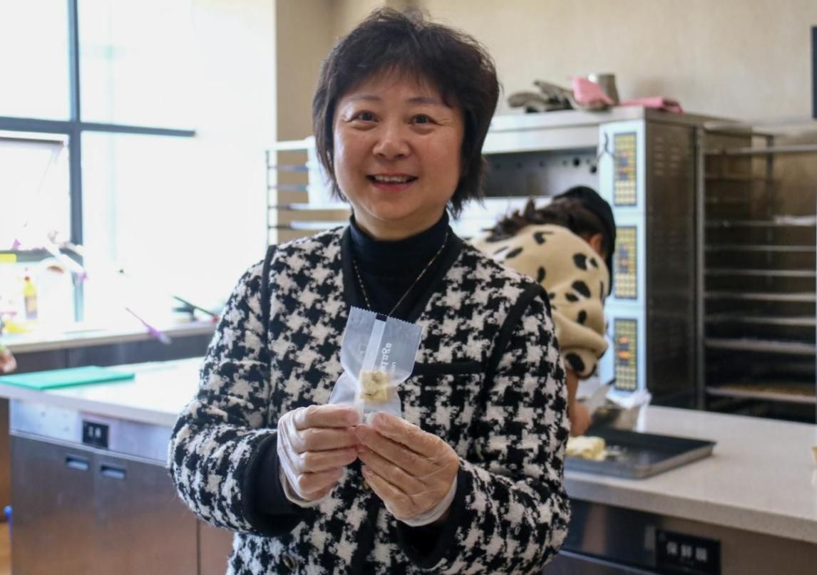 同样因风味独特而备受喜爱的还有雪花酥。师生们兴趣高涨,自行组队分工,配合默契、有条不紊。从熔糖、拌坚果到塑型、分切包装,每一步都做得细致无比,专注投入。最后,奶香充裕、口感丰富的“网红”甜点雪花酥出炉,装袋以后胜似卖品,大家脸上都洋溢着欣喜的笑容。