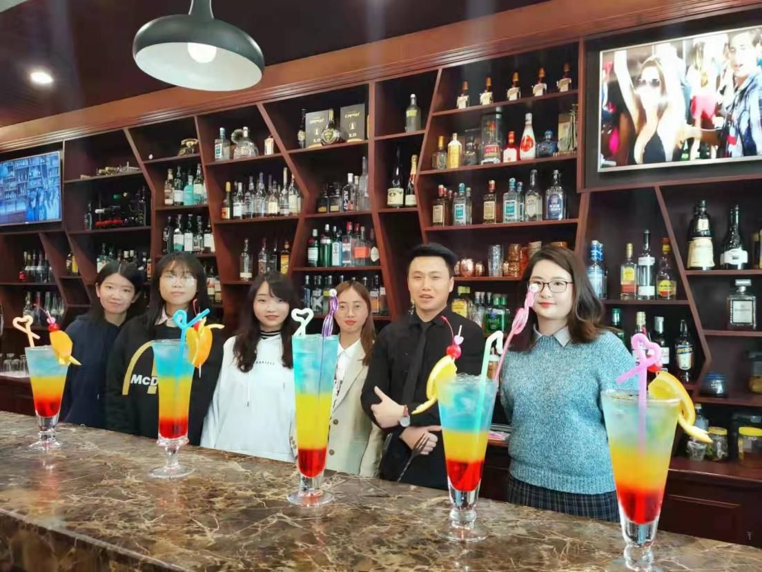 花式调酒也备受师生欢迎。调酒教室里气氛热烈,师生们围在调酒师身边,欣赏专业老师如同变魔术一般舞动双手,让冰冷的酒瓶在空中跳起了灵活的舞蹈。精彩的手法让师生们看得如痴如醉,不时爆发出一阵阵喝彩声。老师表演完毕,大家便迫不及待地动手一试,把不同颜色的酒依次注入晶莹剔透的玻璃杯中,一杯杯色彩绚丽、层次分明的鸡尾酒便呈现出来。大家谈笑风生,杯盏交错,细心品味,畅快交流,无比享受这个特殊日子里的浪漫午后。