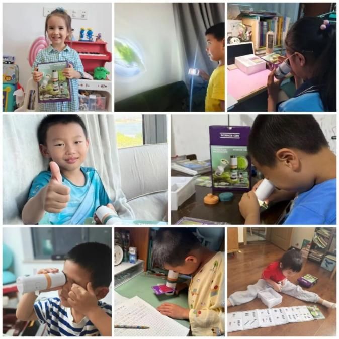 “孩子超级开心,一起搭建、观察、探索,太有趣啦!”“下次户外爬山就要带上啦!它能让我看得很远很远!”“我和爸爸妈妈一起做了西瓜皮切片,可以用显微镜观察”。“外二代”们在父母的帮助下熟练运用工具探索,迫不及待地分享与新玩具的互动体验,收获新知的同时增进了亲子互动,营造了温馨的节日氛围。
