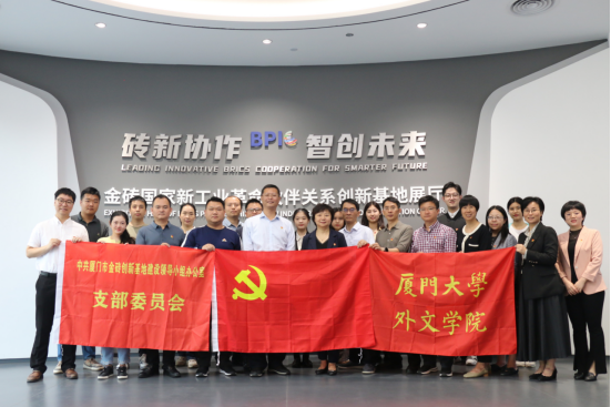 为深入开展学习贯彻习近平新时代中国特色社会主义思想主题教育,认真践行“学思想、强党性、重实践、建新功”总要求,5月9日上午,厦门大学外文学院党委组织师生前往合作单位厦门市金砖创新基地建设领导小组办公室,聚焦“携手推动‘一带一路’建设与金砖国家合作高质量发展”联合开展主题教育读书班专题学习。厦门大学外文学院党委书记、教授徐琪,厦门市金砖办党支部副书记、副主任李铭,双方处级党员领导干部等参加学习活动。活动由李铭、徐琪共同主持。
