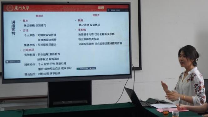 “扬才先锋”党支部宣传委员、法学院2022级硕士研究生方海静以“用心用情用力做好宣传工作”为题进行分享。她以“厦大扬才先锋”微信公众号的推文为例,强调了完善宣传工作机制的重要性,总结了活动各阶段的宣传注意事项,并就图片拍摄的前期准备、拍摄细节、后期处理进行详细解析。