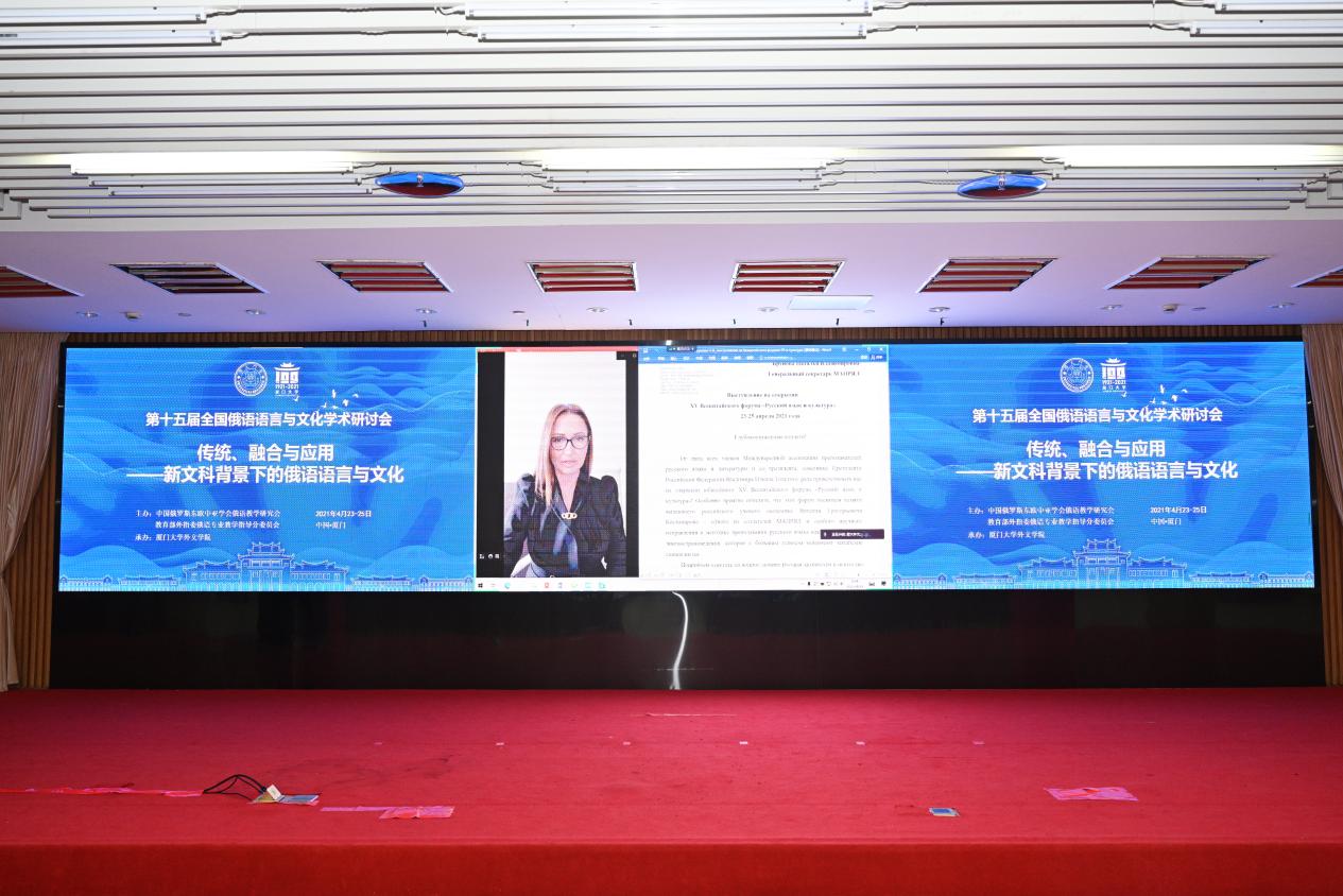 4月24日,由中国俄罗斯东欧中亚学会俄语教学研究会、教育部外指委俄语专业教学指导分委员会主办,厦门大学外文学院承办的第十五届全国俄语语言与文化学术研讨会在厦门大学隆重开幕。本届研讨会以“传统、融合与应用——新文科背景下的俄语语言与文化研究”为主题,探讨新文科建设背景下俄语语言与文化研究的新趋势、新思维、新方法。会议采取线上线下相结合的形式,吸引了来自全国近百所高校约150名中国俄语语言与文化教学与研究领域的专家学者共襄盛举,堪称中国俄语学术界的一次盛会。