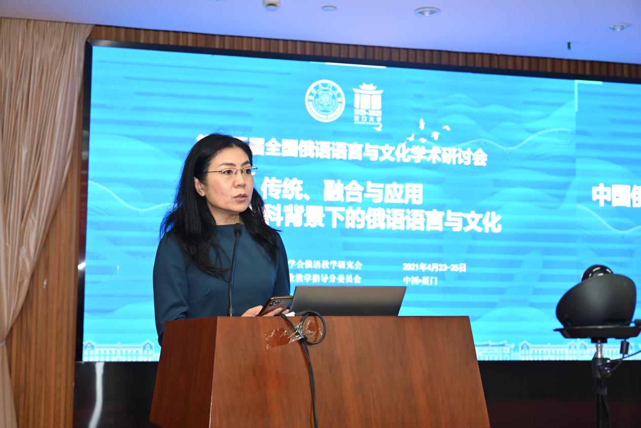 中国俄语教学研究会会长宁琦教授在致辞中表示,语言与文化相互影响,语言是文化的载体,文化则具有民族性、国家性。语言与文化的研究是培养外语人才的重要途径,也是促进文化交流互通的必经之路。本届研讨会是中国俄语教学事业发展的里程碑,标志着中国俄语语言与文化研究又迈上了新的台阶。最后,她对承办此次活动的厦门大学表示衷心感谢并预祝此次研讨会圆满成功。