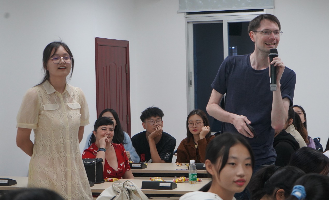 主持人安雪莹同学邀请法国友人Jocelyn LHERMINE游戏环节中互动