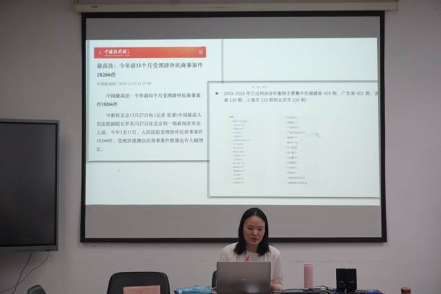 本次活动围绕教学结合科研——探索警局口译职业道德培训课程为主题,主要由项目背景、课程设计、初步数据三个部分展开。首先赵肖老师介绍了部分自改革开放以来外国人来华数据,其中重点指出涉外案件逐年攀登,近几年涨幅惊人。同时,福建省的涉外案件排名全国第一。这意味着在福建省展开警局口译人才培养的工作刻不容缓。2017年,厦门市出入境和公安局为解决他们所面临的警局口译质量问题,主动与厦门大学外文学院洽谈合作,由取得翻译资质的口译方向研究生,为厦门市各区派出所和出入境海关提供口译服务,亦打开了相关研究的机会窗口。