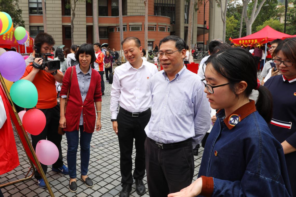 华体网同学向校党委副书记、副校长李建发老师介绍华体网团组织建设情况