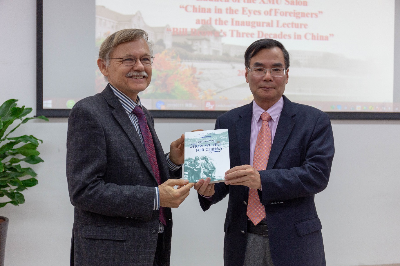 讲座中,潘教授分享了自己三十年来的生活经历,表达了对中国改革开放以来发展的赞叹。潘教授说,自己年轻时曾经去过很多国家和地区,包括墨西哥、土耳其、中国台湾等,但最终还是因为和大陆难解的“缘分”,选择留在厦门,并与厦大结缘。1988年,潘维廉毅然卖掉公司,不顾亲友反对,举家搬到了厦门,到如今已有30年之久。在这里,潘教授学习中文,走遍中国大地,了解中国文化。从80年代以三轮车代步到如今车水马龙、从需要自己磨面烤面包到各类物资应有尽有、从水电时断时续到工农业的高速发展,潘教授见证了改革开放后三十年来厦门的发展、中国的发展,更是目睹了中国人民不懈努力的追梦路。