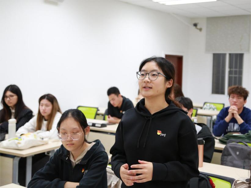 专题党课分享结束后,与会党员们展开了积极讨论,并结合实际交流了自己的学习心得。张琳同志认为我们在日常生活中可以通过传播非遗传统文化相关视频、参观历史文化名城古迹等实际行动来主动传达文化自信。潘雨薇同志谈到,作为外语学习者不仅向外探索外国文化,更要注重向内挖掘以及守护我们自己的优秀传统文化,可以从传承和探索身边的习俗着手守正创新,坚定文化自信。马佳雯同志则分享了她前往厦门市同安区白交祠村感受红色文化的经历,由此讲述红色文化资源对乡村振兴的重要意义。