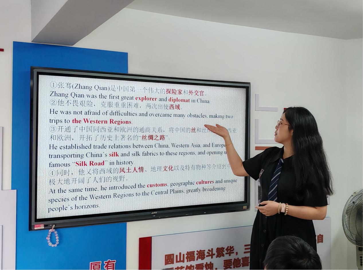 6月21日封诗琪同志、张玉莹同志担任主讲人,完成第二节外交微课堂活动封诗琪同志以“外交中的女性力量”为主题,介绍了中国女性外交官的杰出事迹,激发了同学们对外交事业的浓厚兴趣。她首先从何为外交的问题切入,引导同学们思考外交官需要具备的一系列能力。课堂上,同学们踊跃发言,氛围活跃,对外交典范产生强烈好奇。随后,封诗琪同志介绍了以傅莹、华春莹为代表的中国女性外交官的故事,现场同学们认真聆听,纷纷致以敬意。张玉莹同志则从China”(中国china”(瓷器说起,采取互动方式让同学们主动探索两个英语单词背后的历史关联。此外,她向同学们介绍了抗美援朝的历史故事,绘声绘色的讲解使同学们印象深刻,积极参与课堂讨论。在最后的复习总结中,同学们纷纷表示学到了有关战争与和平的英语单词,也产生了更为浓烈的爱国热情。
