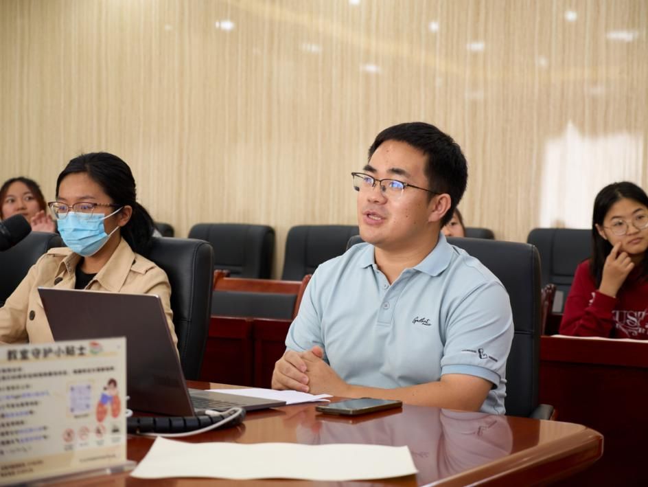 颁奖环节结束后,外文学院本科生第四党支部书记张宇宙老师向在场师生呈现了“行闽译红”暑期社会实践队的成果视频。该实践队由欧语系教工党支部指导、本科生第四党支部牵头组织。视频聚焦非物质文化遗产“中国白·德化瓷”,由欧语系同学集体创作,生动展现了同学们运用多语种讲述中国式现代化故事、推动中华非遗文化走向世界的专业素养与青春风采。