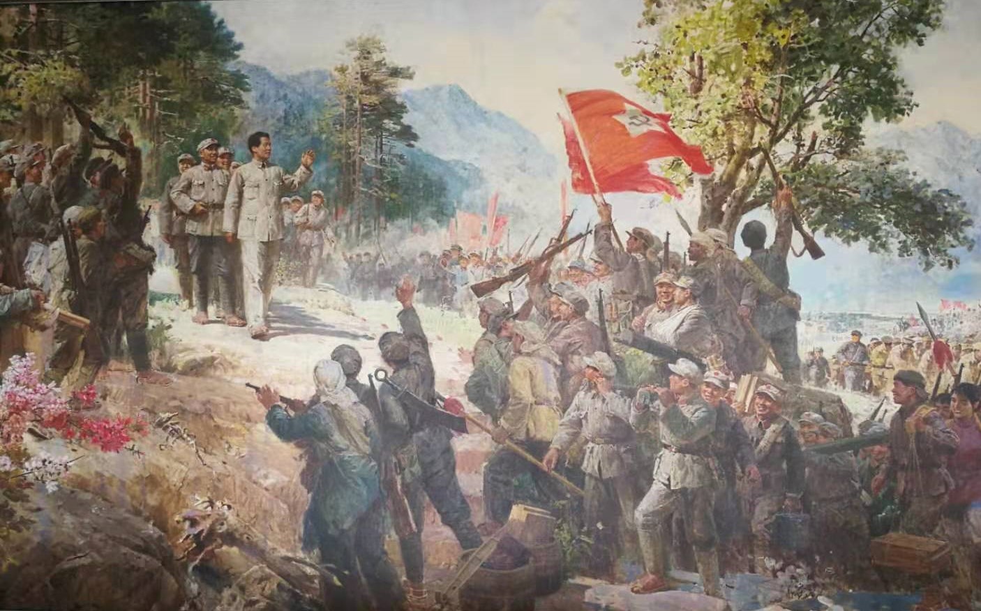 宁化和建宁属三明市管辖,都是闽西苏区。在三明北站下车之后,一行人坐上大巴,径直驶往宁化县城。位于闽赣两省交界处、武夷山脉东麓的宁化,曾经是中央苏区的重要组成部分,有着“中央苏区乌克兰”的美称。我们参观的第一站是宁化革命纪念园。进入纪念园,绕过纪念馆是一个小广场,广场上矗立着两座雕像,一座雕塑再现了红军战士冲锋陷阵的情景,雕塑的名字就叫“军号嘹亮”。另一座雕塑是毛泽东主席站在一匹骏马旁边极目远眺,雕塑的底座上刻着毛主席著名的《如梦令·元旦》:“宁化、清流、归化, 路隘林深苔滑。今日向何方, 直指武夷山下。山下山下, 风展红旗如画。”雕塑和诗词令人浮想联翩,脑中闪回当年群情激昂、红旗招展的热火朝天景象,心中顿时涌起一股革命的乐观主义豪情。