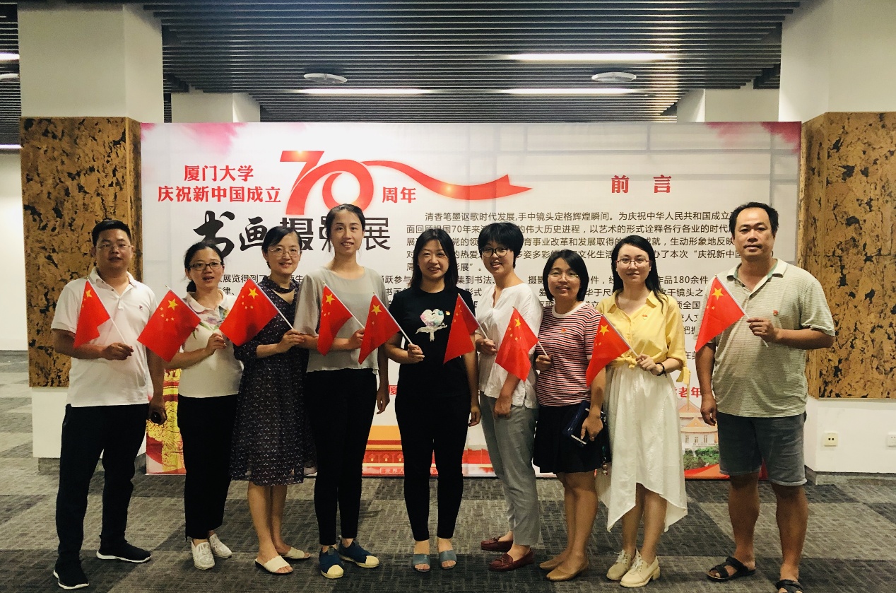 9月30日下午,行政党支部全体党员在党支部书记陈雯娜的带领下,来到科艺中心参观了“厦门大学庆祝新中国成立70周年书画摄影展”。展览分为书法展、绘画展和摄影展,展出作品以不同的艺术形式,诠释了各行各业的时代风貌,充分展现我校在党的领导下各项教育事业改革和发展取得的辉煌成就。参与活动的支部党员通过观看展览,更加深切体会到中华人民共和国成立70年来的波澜壮阔,更加深了自己对党和祖国的热爱之情,同时,也更加坚定了在未来的工作生活中以实际行动弘扬爱国奋斗精神的决心。党员们表示将立足岗位,甘于奉献,为祖国未来发展、为学校“双一流”建设和一流学院建设做出更大贡献。
