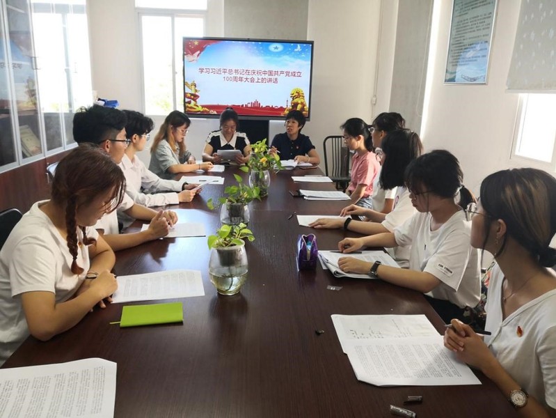 为赓续精神谱系,续谱百年华章,进一步调动支部党员在“两个一百年”的历史交汇点开新局、开好局,外文学院本科生第二党支部于7月14日在南光三401开展了7月“固定党日+”活动,共同学习了习近平总书记在庆祝中国共产党成立100周年大会上的讲话。活动由党支部书记戴晓燕主持,外文学院党委副书记沈丽秀到会指导。