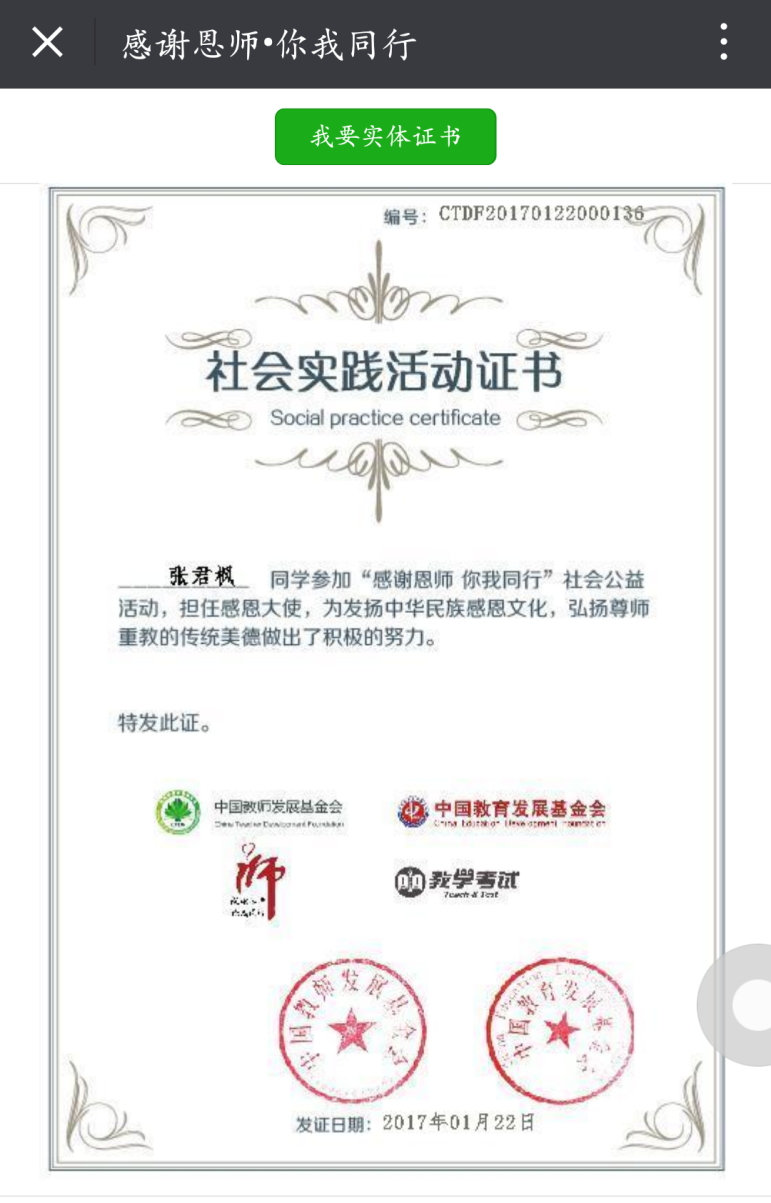 “感谢学校给我提供的这一次感谢恩师的活动,让我有了一个好机会来向老师表达感恩之情。”