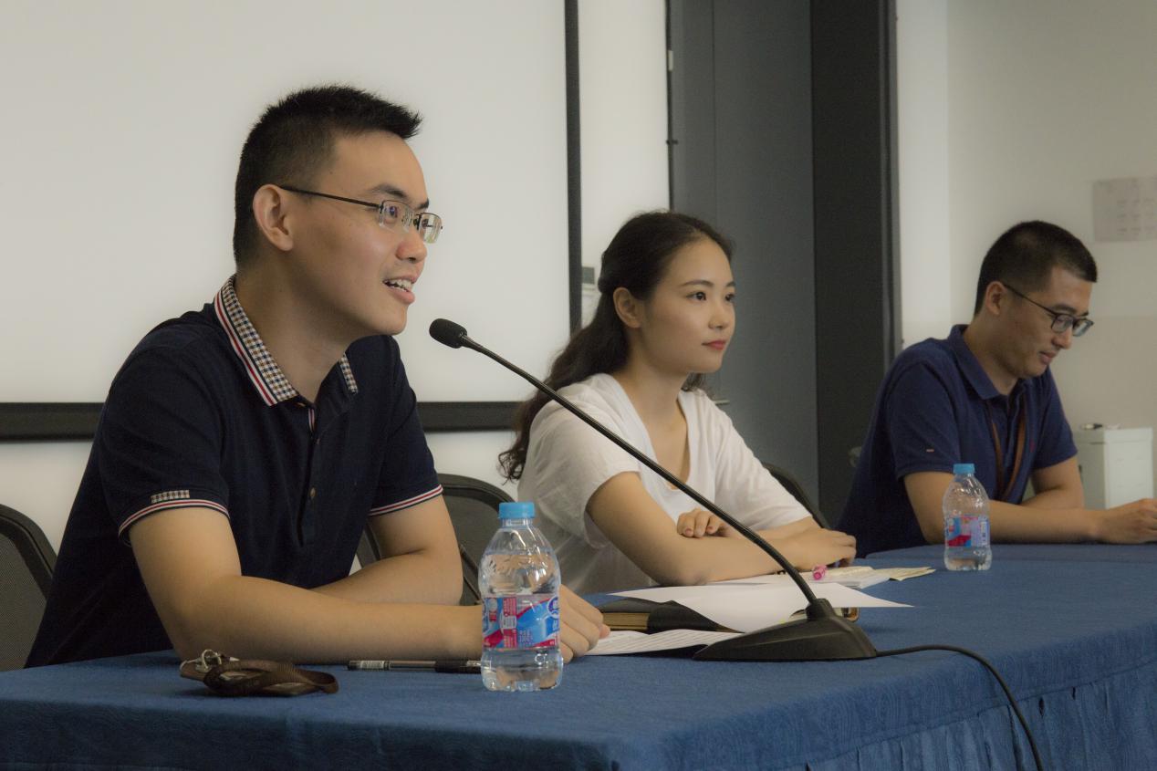 李国栋先生(左)、张晓薇女士(中)以及杨洋先生(右)与同学们进行座谈