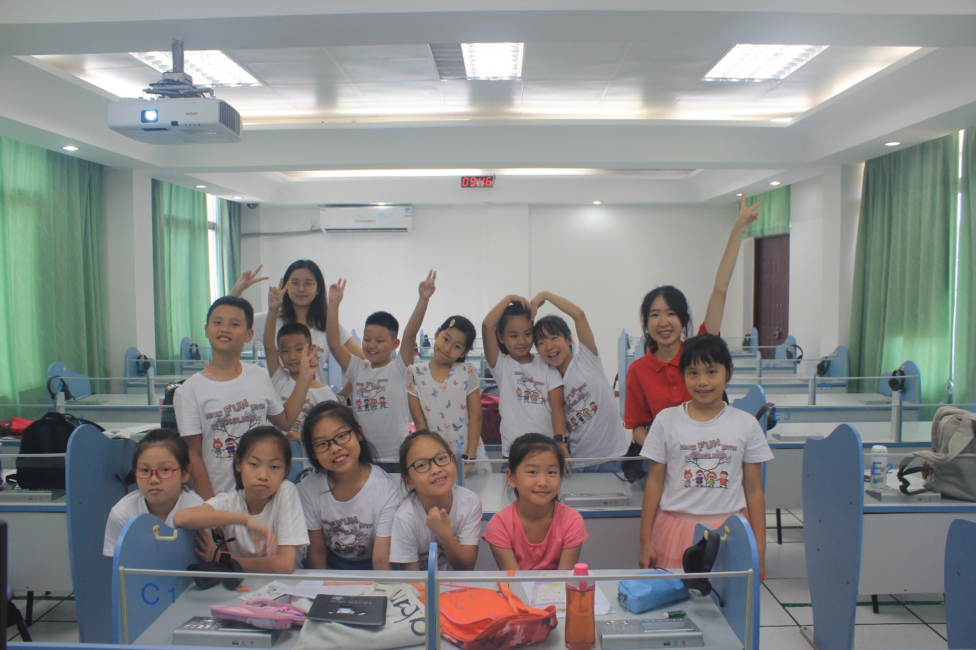 为了提高营员们对课程的接受度和参与度,实践队员们根据营员的年龄大小与英语水平,有针对性地设计课堂内容和教学形式。为了帮助营员们更好地巩固前四日所学,负责低年级教学的实践队员们将新课与复习相结合,在教授新知识点的同时,穿插对已学内容的提问与检查;并通过开展“你画我猜”、“单词抢答”、“Hangman”等趣味游戏,在欢笑声中加深营员们对单词与句式的印象,真正实现了玩中学,学中乐,乐有所获。
