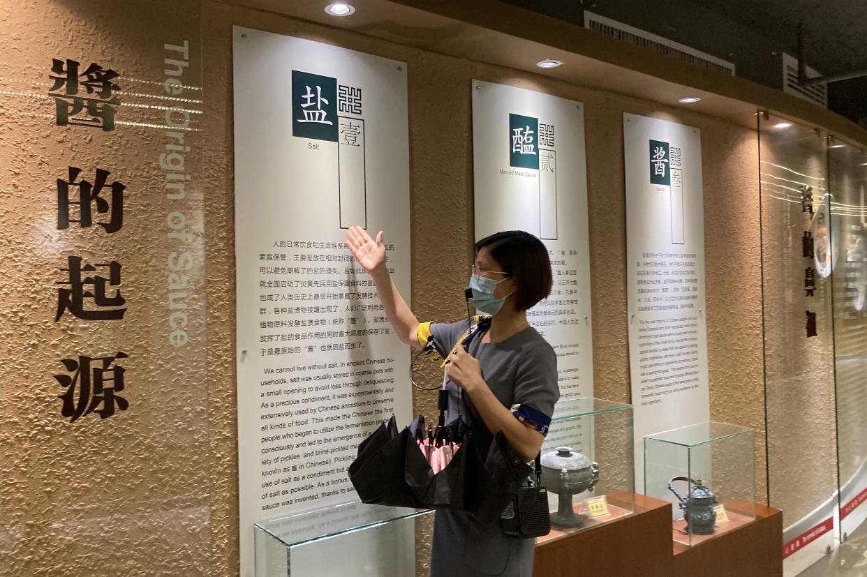 紧接着,队员们步入“酱文化长廊”,在古朴风韵中感知中国酱文化的深厚与渊博。这里不仅浓缩着酿酱起源、制酱工艺、酱业知识、历史名人等丰富的文化内涵,而且再现着古代酱坊独特的风情韵味。伴随一阵阵诱人的酱香,你会看到酱街上来来往往的行人,有的在挽袖制酱,有的在挑担贩卖,还有的在特色酱坊中吆喝揽客,那一瞬间你好像就融入了如火如荼的古代集市之中。