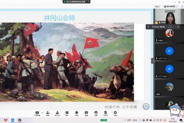 8月2日至6日上午,实践队在腾讯会议平台对接晋江市慎中实验学校四、五年级开展课程。党史课程内容包括讲解重要理论、观看党史视频、党史知识竞猜、讲述先锋故事、同学分享学习感悟等。在课程中,实践队将党史教育与爱国主义教育紧密结合,带领同学们回顾党的光辉历史,学习先锋精神,深化爱国主义。在“抗战中的中国共产党”一课中,同学们踊跃发言,用文字和语音的形式表达了他们心中对周恩来、聂荣臻、贺龙等伟大革命先锋的崇高敬意。通过“三大战役”一课,许多同学表示,他们更加深刻地认识到了中国共产党强大的生命力和始终“以人民为中心,以国家利益为重”的伟大使命。他们纷纷表示,“先辈们的牺牲换来了我们如今的岁月静好,我们要珍惜现在的生活,热爱我们的国家,向他们学习,成为对社会、对国家有用的人。”