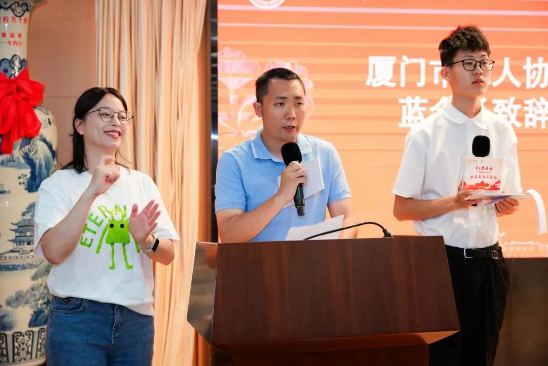 活动伊始,厦门市聋人协会会长蓝维晖致辞,蓝会长向大家讲述了厦门市聋人协会对保障聋人权益所作出的努力。他表示,希望聋人儿童能够和听人儿童享有同样的学习机会,以实现他们的个人发展。