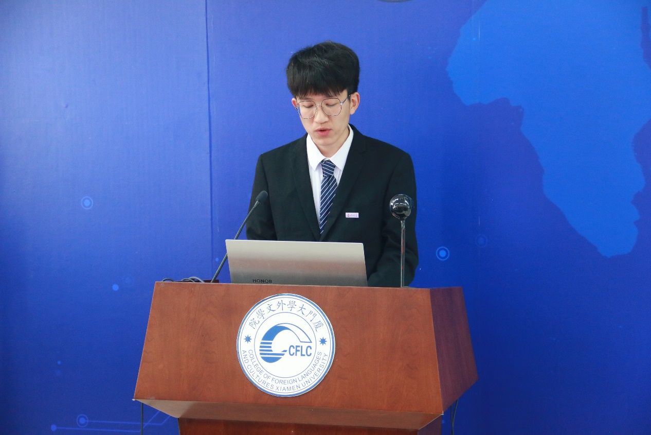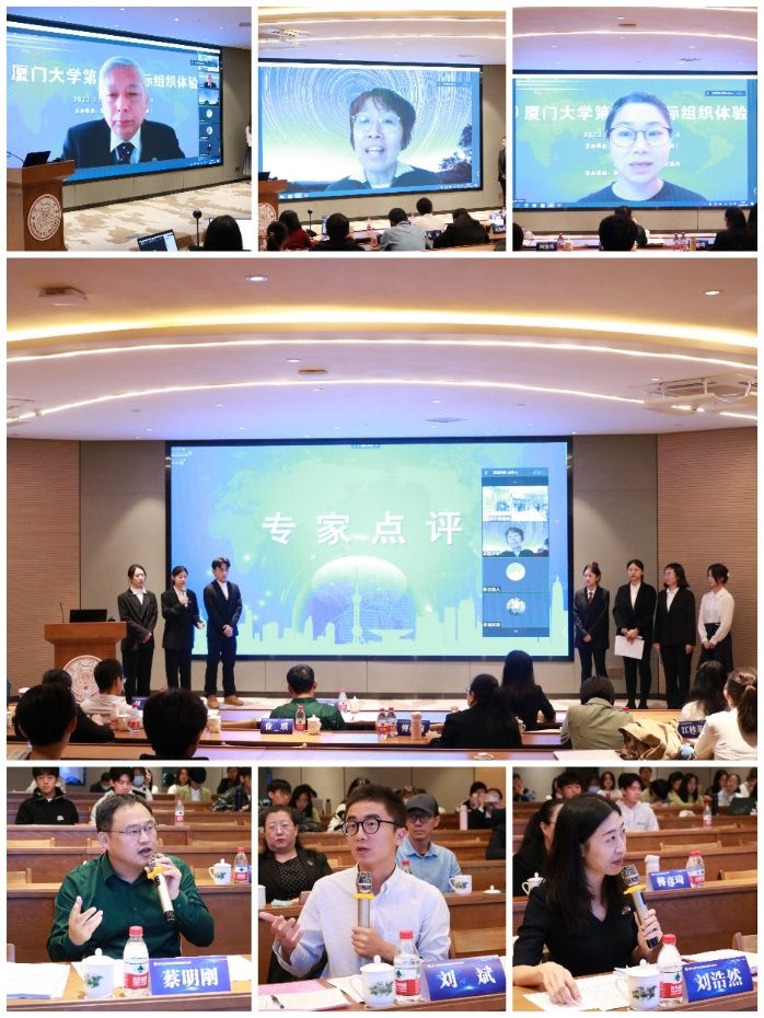 12月4日上午,厦门大学第四届国际组织体验周之国际组织大学生创新大赛决赛于克立楼报告厅举行。本次决赛共有12支优秀队伍入围,决赛采用线上线下同步进行。专家代表刘志贤、陈少华、郭贝思、蔡明刚,以及厦门大学管理学院企业管理系刘斌老师、厦门大学外文学院刘浩然老师担任评委。厦门大学教务处副处长何海涛,外文学院党委书记徐琪、副院长江桂英、英语语言文学系副主任林斌、法语语言文学系副主任沈澍、第二届外国语言文学创新实验班班主任程诗婷和第三届外国语言文学创新实验班班主任傅彦琦等莅临决赛现场。