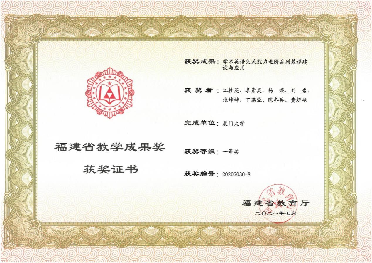 作为“专业+外语”交叉融合的探索性实践,经过四年建设,该课程群各方面已日臻完善,切实提高了管理学院本科生的英语综合能力和专业素养。此外,外语部通过该课程群的建设造就了一批优秀的骨干教师,带动了一批教改项目、一流课程及教材建设立项。2018年至今,外语教学部获批20余项/门校级教改项目或厦门大学一流本科课程(含线上课程、线下、线上线下混合式、通识性课程、课程思政示范性课程,以及课程思政教研项目,其中与本课程群相关的项目或课程达到10余项/门),6项/门省级教改项目或一流本科课程,1门课程获批国家级一流本科课程;出版教材5部;获福建省优秀教学成果奖一等奖1项。
