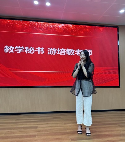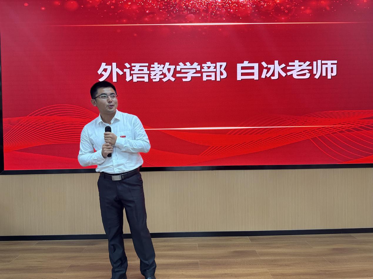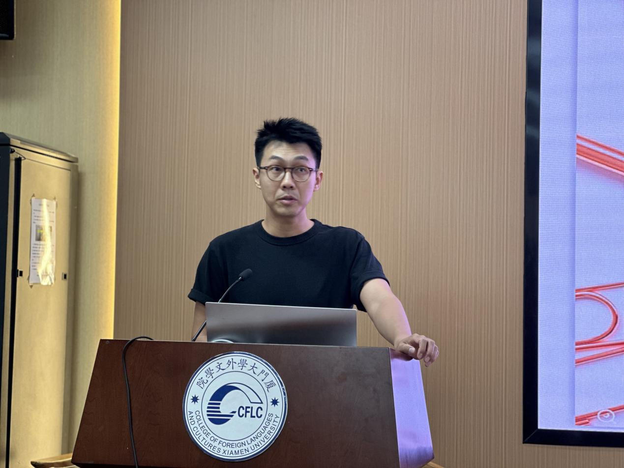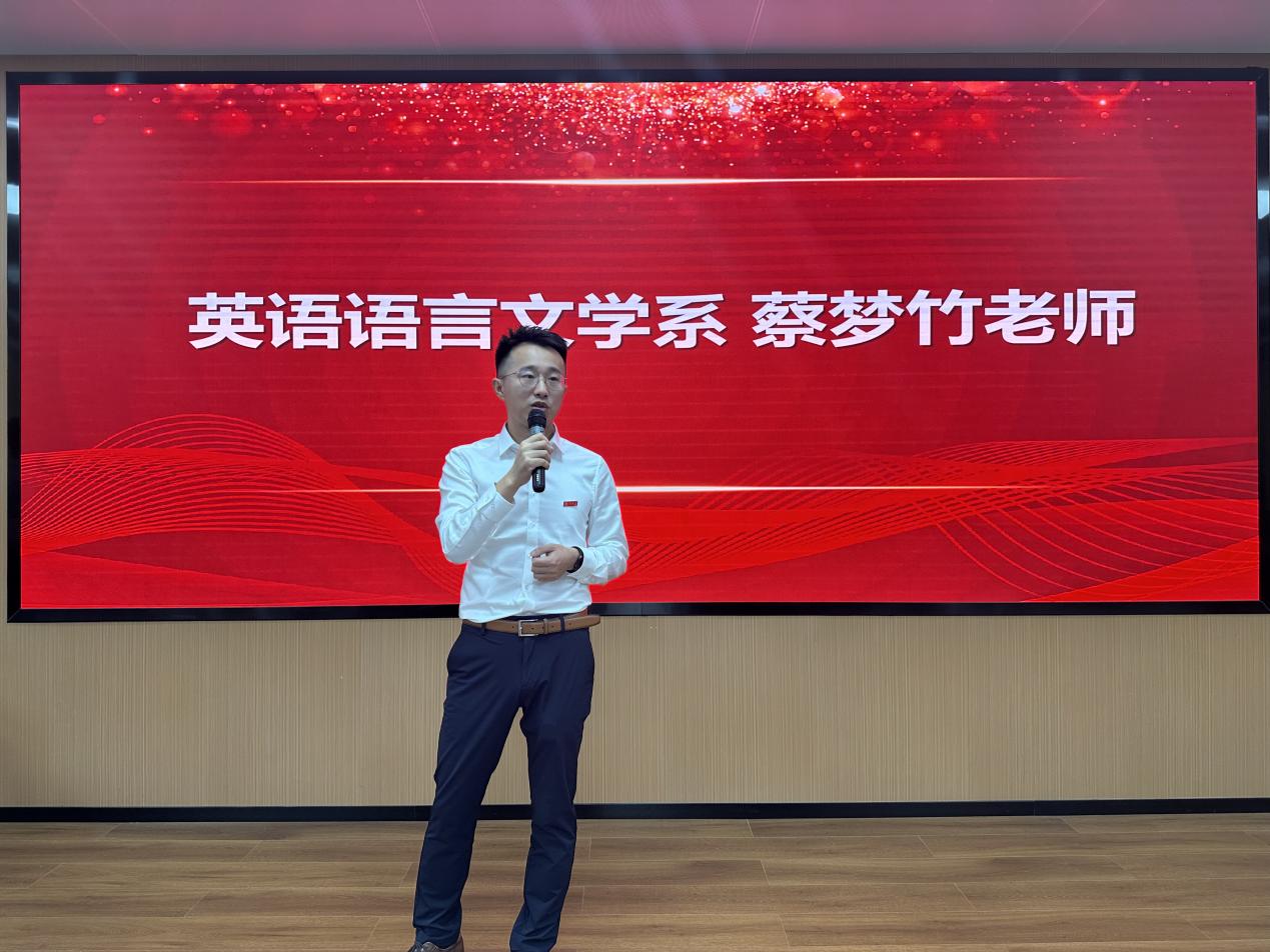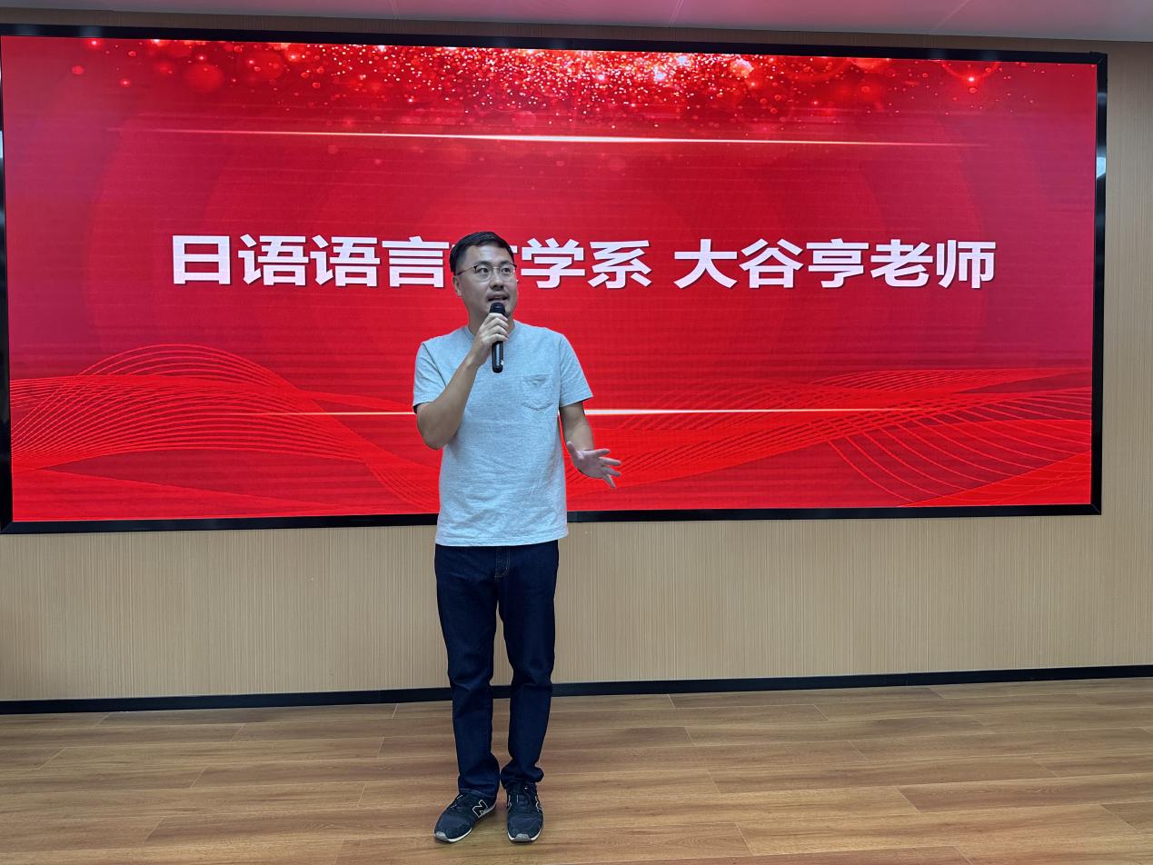在新进教师欢迎环节,陈菁院长逐一介绍了新入职的教职工:英语系蔡梦竹、外语教学部白冰、日语系大谷亨,以及行政人员邱汝岱、游培敏五位老师。五位老师依次发表感言,表达了对加入外文大家庭的欣喜与期待。