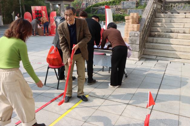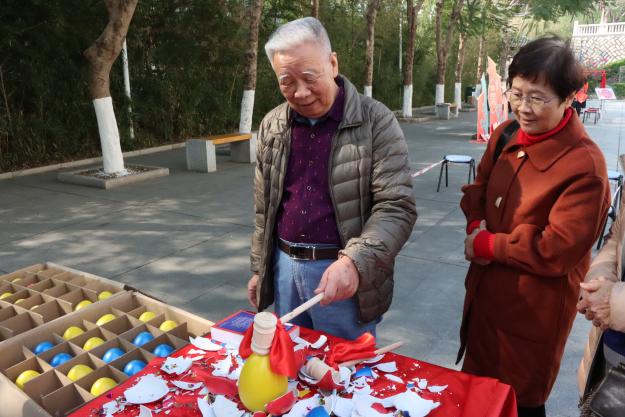 游园会上,学院为教师们精心准备了“金锣开泰”“彩蛋狂欢”“喜气临门”和“五福纳祥”小游戏,每个游戏都备有小奖品。教师们一边排队游戏,一边交流话家常。学院领导向退休教师们报告了学院近一年来的发展成绩和接下来一年的工作计划,同时希望老同志们保重身体,常回学院看看,关注学院的发展。久别重逢的聚会让每一位老师的脸上都洋溢着喜悦的笑容。