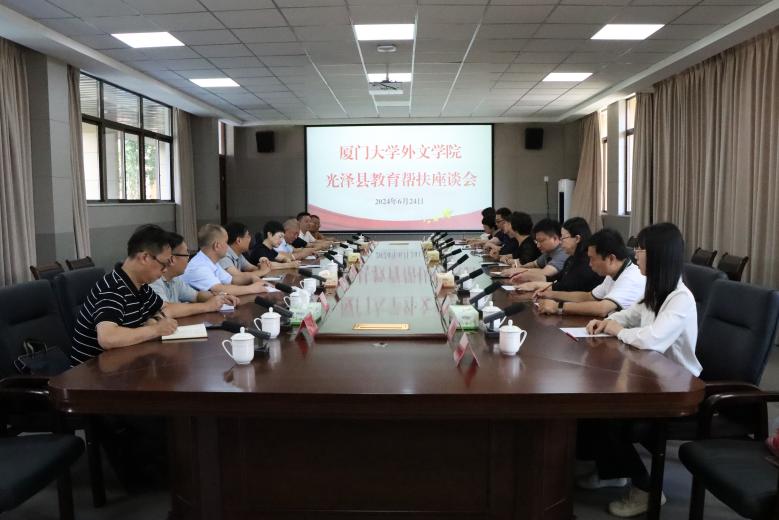 会上,双方就帮扶工作总体设计、重点内容、具体措施等进行了深入交流。张锦鸿副县长代表光泽县对徐琪书记一行表示热烈欢迎,并对外文学院真抓实干开展教育帮扶工作表示衷心感谢。她表示,自去年到访厦门大学以来,外文学院精心策划、积极推进了若干项有助于提升光泽县教育水平的工作,希望外文学院继续在加强光泽外语师资队伍建设与提高英语、日语教育教学水平等方面提供更多的支持和帮助。她表示,光泽县将全力做好服务保障工作,努力营造良好的帮扶合作环境,把各项对口帮扶工作落到实处,共同推进光泽教育事业实现高质量发展。