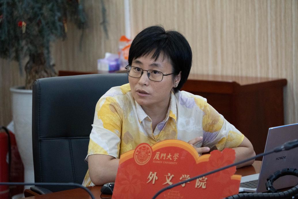 副院长刘悦介绍了德语专业师生6月19-20日的福州鼓岭研学之行。研学团与鼓岭故事的发掘者、《啊,鼓岭!》一文的作者刘中汉先生进行了深入交流,了解了美国加德纳家族的鼓岭情缘。刘悦表示,“鼓岭缘”搭建了一座中美两国人民相互了解的桥梁,为中美关系稳健发展贡献力量,促进了世界各国人民一道共筑和平、共促进步、共创繁荣。代表和平、友谊与爱的“鼓岭精神”不仅展现了中国与世界的友好交流,更为外文学子如何讲好中国故事提供了新方向。