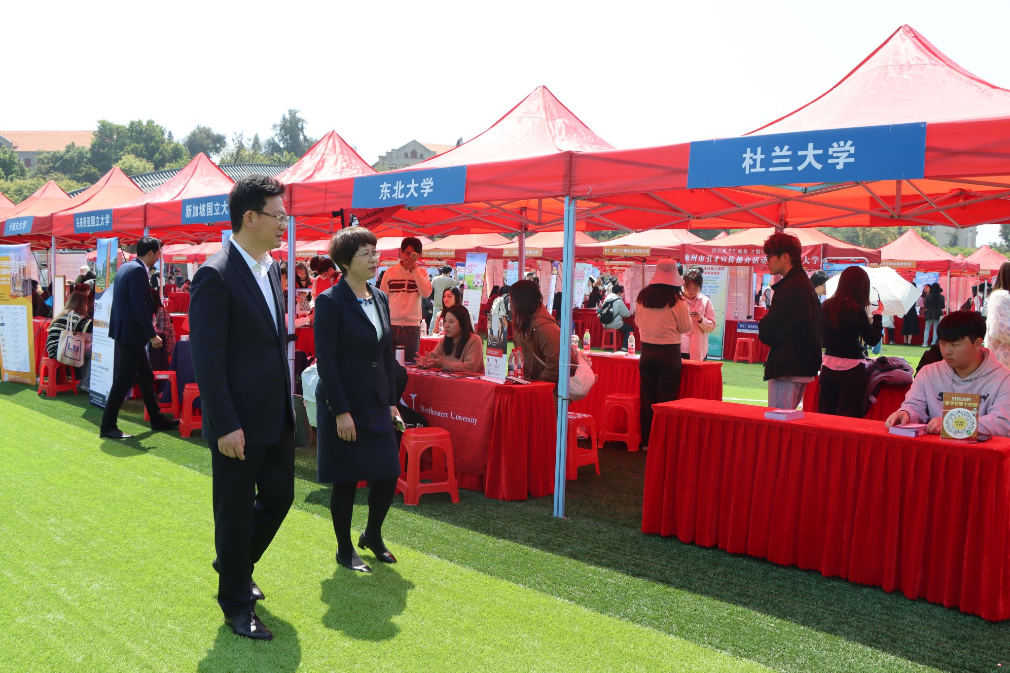为帮助广大学子进一步开拓国际视野,助力有出国留学深造意愿的学子制定择校策略和提升综合竞争力,厦门大学2025年“世界之窗”国际教育展于3月21日在思明校区演武场举办。此次教育展由校学生工作部(处)主办、外文学院承办,面向全校学生开放。校党委副书记、组织部部长、统战部部长孙理亲临现场指导,陈菁院长向其详细介绍了此次国际教育展筹备和组织情况,并一起前往展区与相关高校进行深入交流。