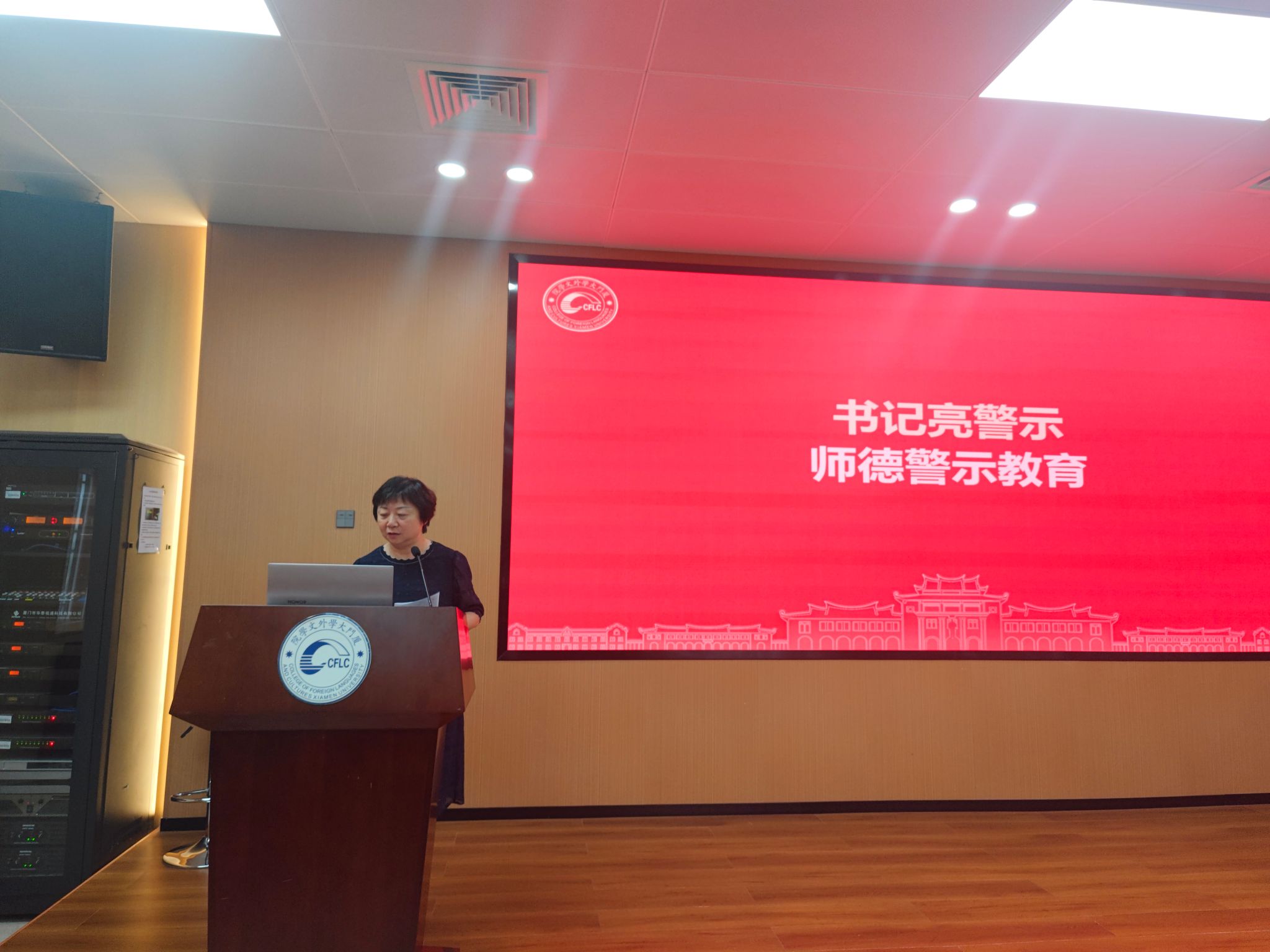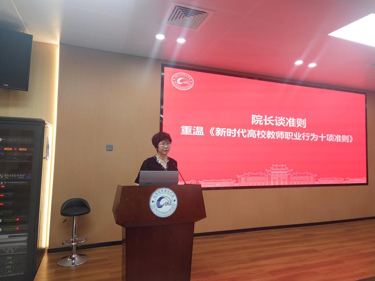 为进一步做好学院师德师风建设,加强警示教育工作,根据学院党委部署,本次大会还开展了“院长谈准则、书记亮警示”活动,陈菁院长带领全院教职工重温《新时代高校教师职业行为十项准则》,徐琪书记结合师德失范典型案例和学校出国(境)全流程管理要求进行了针对性强调。