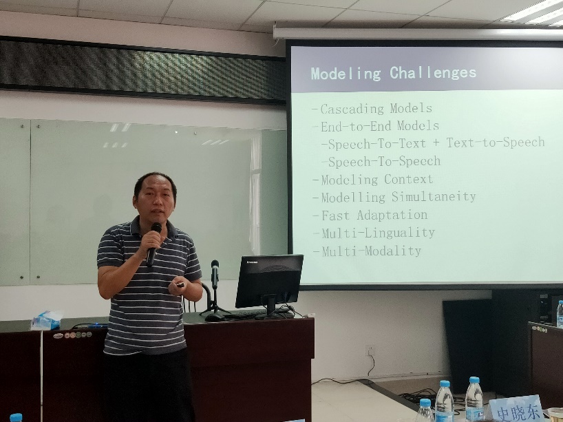 紧随其后的是两场专题讲座。厦门大学信息学院博士生导师史晓东教授的讲座题目是“语音自动翻译面临的挑战”,史教授通过现场实时的语音自动翻译展示了这一技术最新的发展状况,还探讨并展望了机器翻译的应用场景和存在的问题。在题为“学生英译汉三种文本类型的自动评分”的讲座中,对外经济贸易大学英语学院博士生导师江进林教授考察了自动评分系统在不同文本下的信度、效度及其与人工评分的差异。两位教授分别汇报了信息技术在语音识别和自动评分领域的最新进展,给口译教育的信息化带来了新的启发。