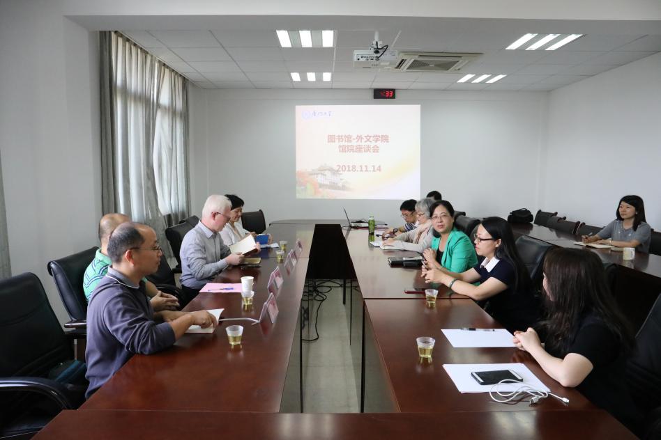 (图:厦门大学图书馆-外文学院馆院座谈会现场)