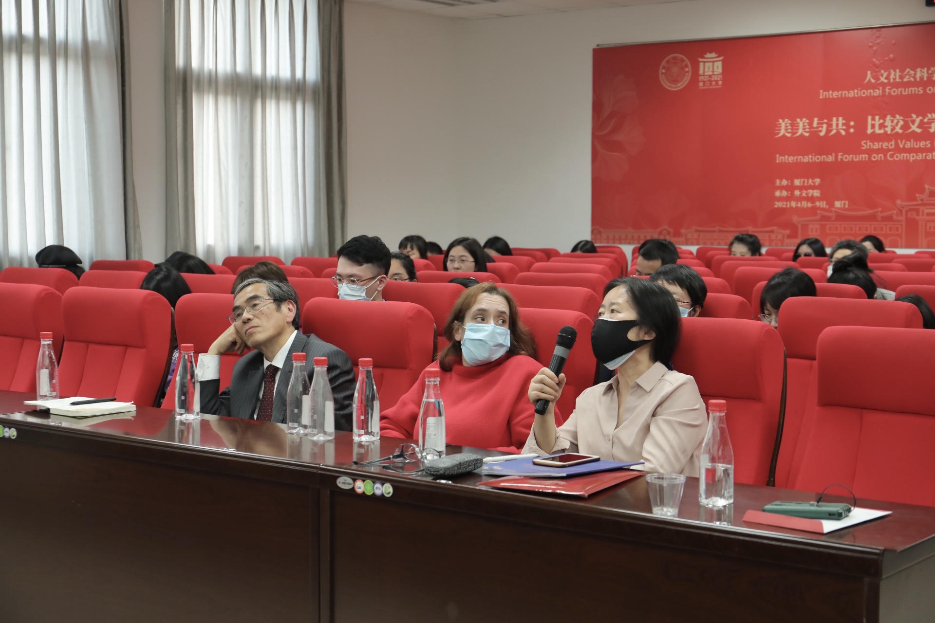 开幕式后,人文社会科学国际论坛分论坛“美美与共:比较文学与跨文化研究国际论坛·中外学者论坛”正式开始,四名学者先后在外文学院313会议室发表了演讲,部分参会嘉宾也在厦门宾馆广益厅观看了线上直播。厦门大学比较文学与跨文化研究中心执行副主任苏欲晓、副主任刘雪岚主持了此次论坛。