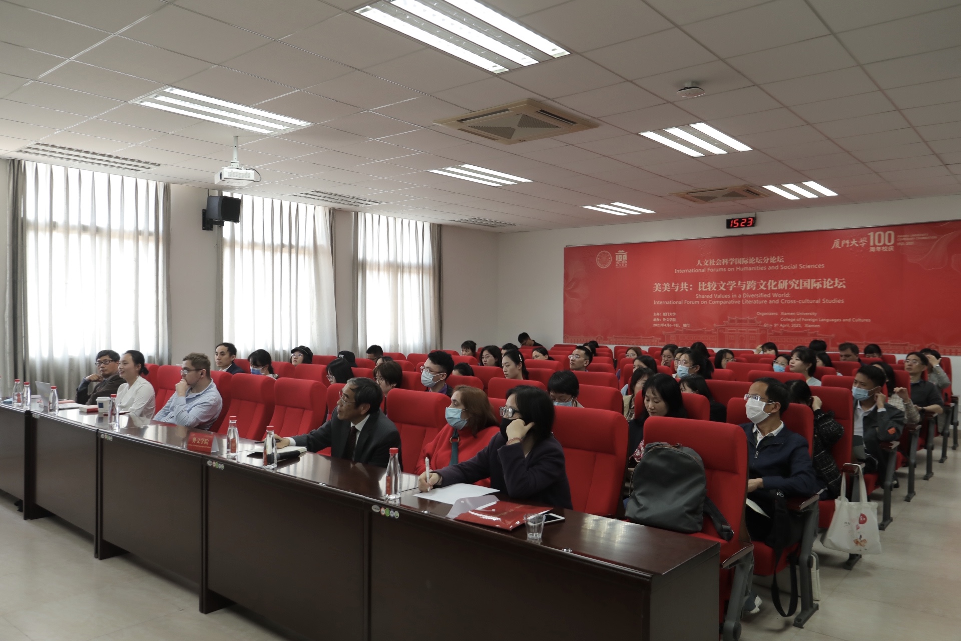 论坛开始前,全体与会嘉宾于德贞楼313会议室线上观看人文社会科学国际论坛开幕式。开幕式由厦门大学副校长杨斌教授主持。