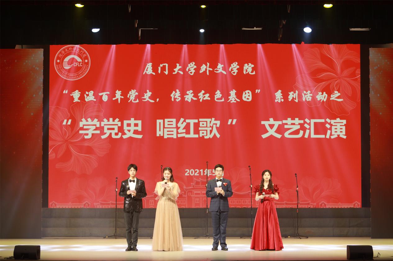 百年华章,以声献礼。5月29日晚,外文学院“重温百年党史,传承红色基因”系列活动之“学党史 唱红歌”文艺汇演在建南大会堂隆重举行。外文学院师生代表组成了十余支合唱队,以歌声回顾百年党史,用旋律铭记初心使命,彰显了外文师生学党史、听党话、 跟党走的坚定决心。厦门大学党史学习教育第五指导组组长杨敬达,学校基层党建工作联络员黄定基,学生处处长李峰,组织部副部长乔连全,宣传部副部长楼红英,教师工作部副部长伍伟平,外文学院党委书记陈志伟,党委副书记马龙、沈丽秀,副院长李美华、徐琪、辛志英,英语系副主任林斌,工会主席潘宁等莅临活动现场。