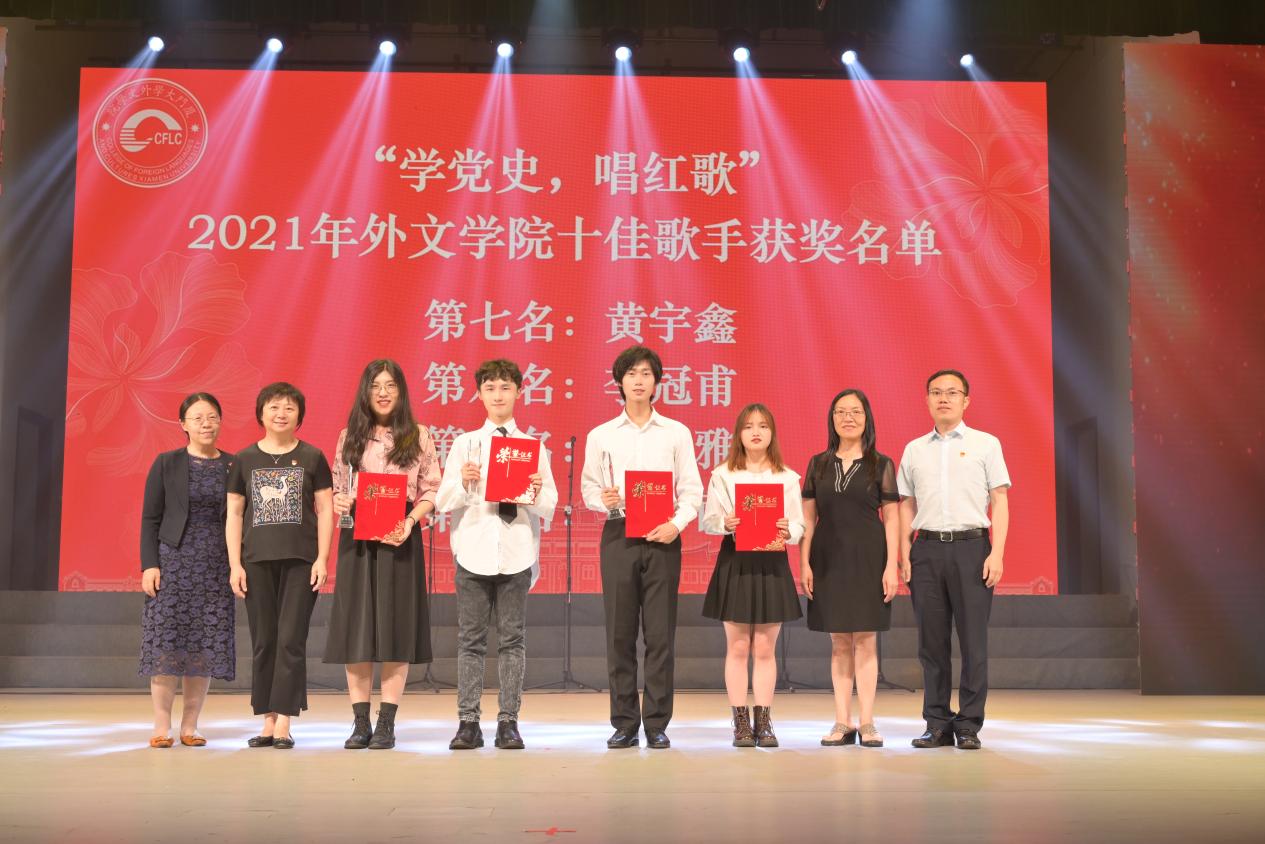 汇演现场还举行了“学党史 唱红歌”2021年外文学院十佳歌手颁奖仪式,莅临现场的领导嘉宾为十佳歌手颁发了证书和奖杯。