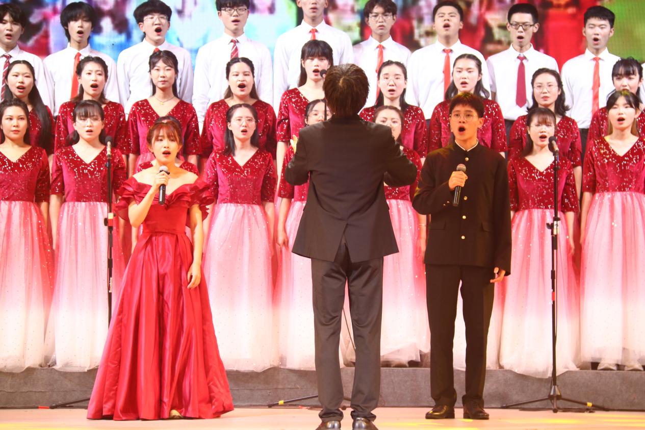 每场精彩的演出背后凝结的是无数人的努力与付出:学院领导老师的悉心关怀、合唱队员们的认真排练、后勤保障同学的辛勤筹备、来自艺术学院的艺术指导同学的大力支持……从服装到灯光,每一个细节都细细打磨;从台前到幕后,每一滴汗水都不被辜负。星光不负赶路人,日日夜夜的排练最终得以呈现美轮美奂的歌声,青春向党、逐梦新章。