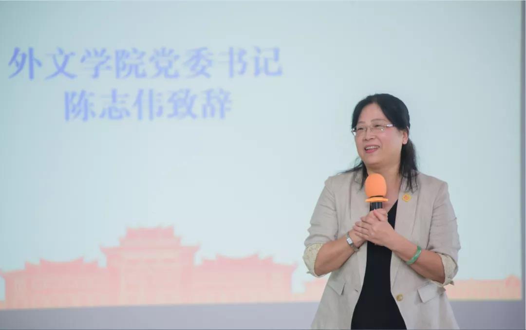 党委书记陈志伟转达了来自外文学院全球院友联合会会长朱德贞女士对重庆院友会的祝贺。陈志伟书记对重庆院友会筹备工作组的辛勤劳动表示衷心感谢,为在渝外文院友带来母院的亲切问候。她希望重庆院友会能够为广大院友搭建加强联系和增进合作的平台,成为院友和院友之间、院友和母院母校之间的桥梁和纽带,成为外文人心向往之的温馨港湾。