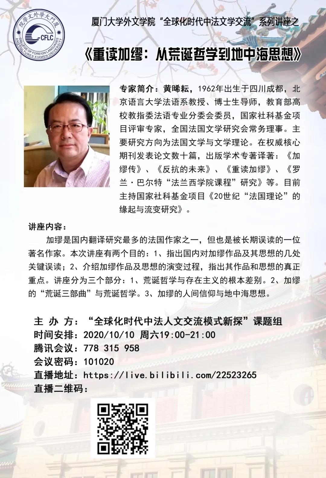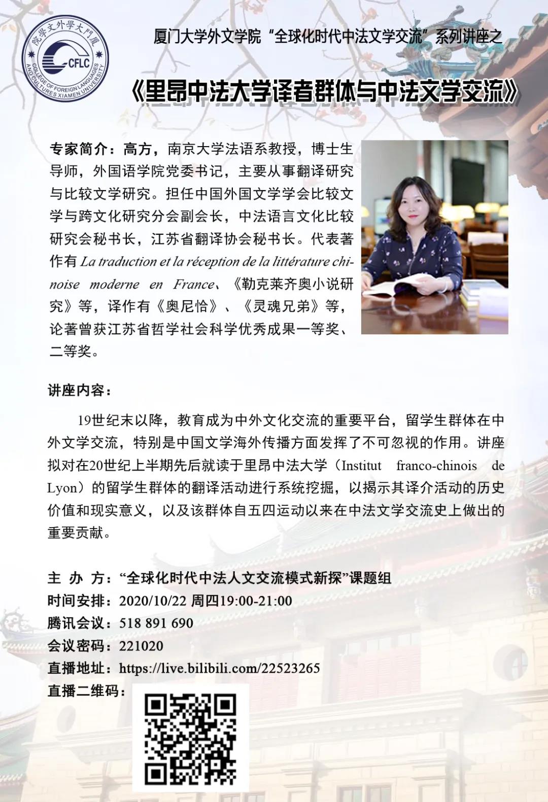 厦门大学外文学院“全球化时代中法文学交流” 系列讲座信息