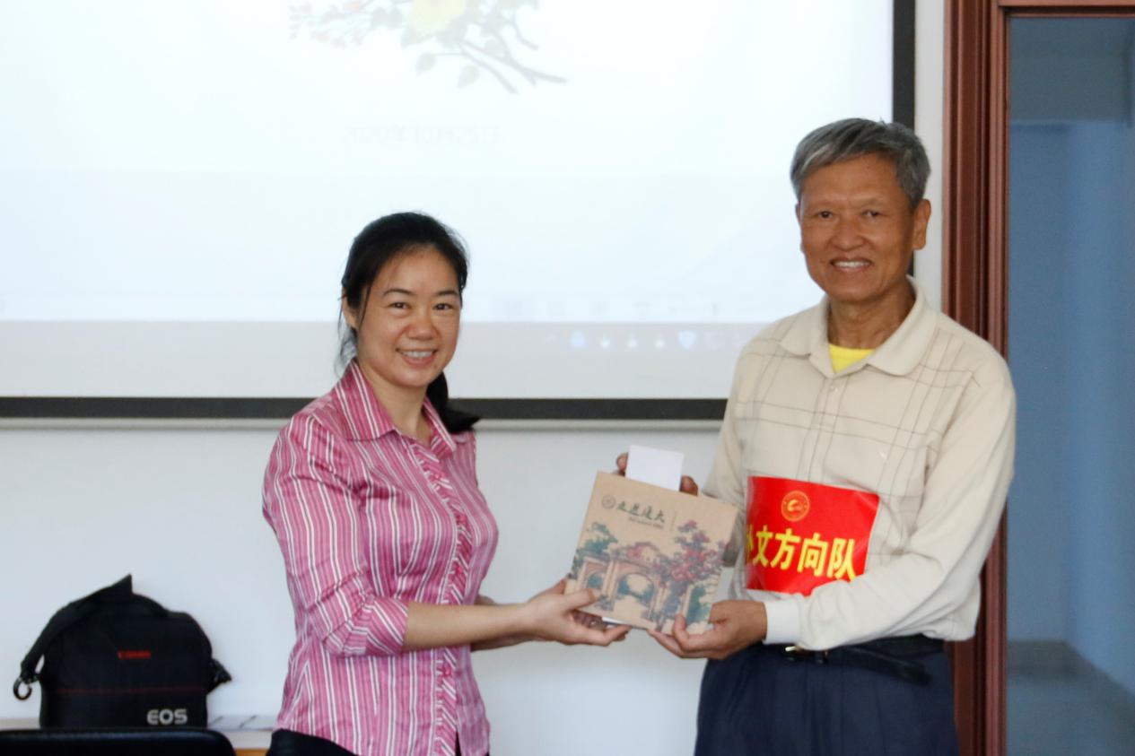 定向越野活动结束后,张礼龙、苏清辉两位老师来到外文学院德贞楼,与2020级新生一同参加重阳茶话会。会上,张老师与苏老师分享了自己几十年来的生活经历与人生经验。张老师在分享中将自己的求学经历与对时代的看法相结合,肯定了外文学子敬老爱老的优秀传统文化品质,勉励外文新生时刻保有好奇之心,紧跟时代步伐;苏老师则谈到自己的父母就是“厦大人”,讲述了他与厦大的深厚感情,勉励外文新秀们艰苦求学,培养国际视野,发扬外文精神,同时他也提醒同学们要深入了解厦大文化,传承厦大精神,让自己成为真正的“厦大人”。茶话会后,学院团委副书记、辅导员戴晓燕为两位老师送上了重阳纪念礼物,表达了对老同志们真挚的节日祝福。
