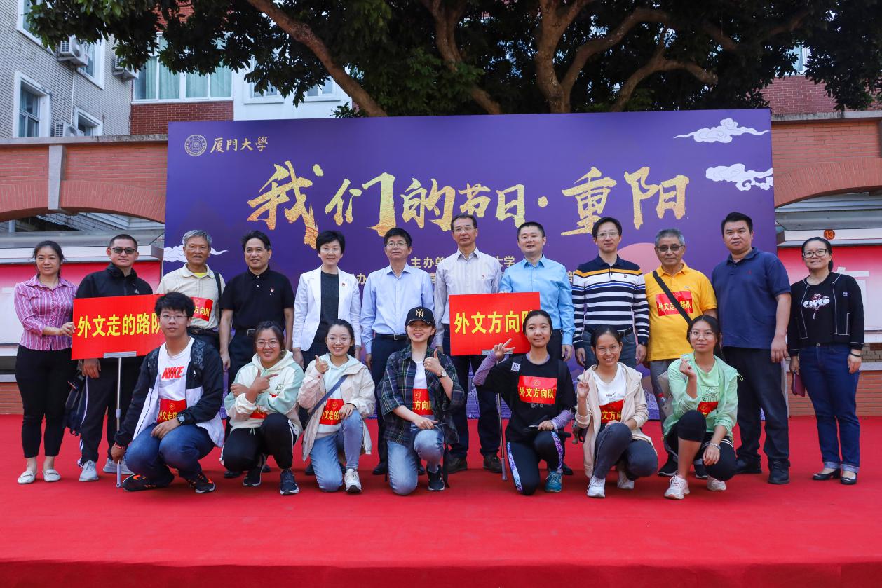 定向越野活动结束后,苏清辉老师欣慰地感慨在新一代外文人身上看到的朝气蓬勃和谦逊有礼:“今天有机会能和年轻人在一起参加活动,感觉自己也年轻了,一路上向他们介绍了厦大和学院的一些变迁,‘小朋友’听得津津有味。通关游戏中同学们对重阳节的诗词接龙和知识问答,让我看到当代年轻人对传统文化的了解和他们的感恩尊老之情。”张礼龙老师则追忆起自己的学生时代,并满怀真诚表达了对同学们的殷切期待和祝福,“希望青年人们能珍惜这来之不易的好时代、好机会,不负韶华,好好学习,全面锻炼自己,把自己培养成为国家和时代需要的人才,也为自己创造一个美好前程,为实现我们中华民族伟大复兴的中国梦贡献力量。”参与现场活动的同学们也同样热情高涨,2020级法语专业本科生朱芳同学表示:“很荣幸能在重阳佳节与老师们共赏厦大风光,聆听外文故事。这次越野活动中不仅体验到好玩的游戏,更感受到厦大百年传承的精神。很开心能有这次和老师交流的机会,衷心祝福老师们节日快乐,身体健康!”