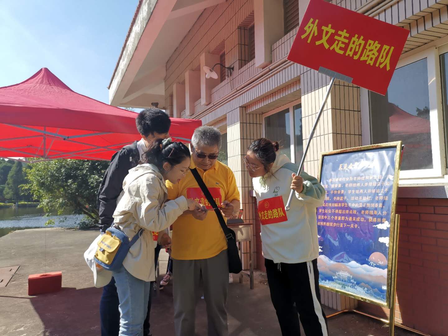 重阳佳节,最宜登高望远、踏秋赏菊。在本次“我们的节日?重阳”主题系列活动中,学校在健步走的基础上,精心设计了定向越野活动。外文学院专门邀请到了退休教师张礼龙、苏清辉与2020级新生们组队,共同参加了此项活动。两位老师分别率领“外文走的路队”与“外文方向队”从三家村学生广场出发,在重阳秋色的陪伴中一路向前、通关打卡。两支队伍先后抵达诗词接龙、习俗问答、抛掷香囊、放飞风筝、风车轻旋等通关点,参与了一系列丰富多彩的民俗文化游戏。师生密切合作,现场笑声不断,不仅弘扬了尊师重道、敬老爱老的中华优秀传统文化,也更拉近了老教师与青年学生之间的距离。